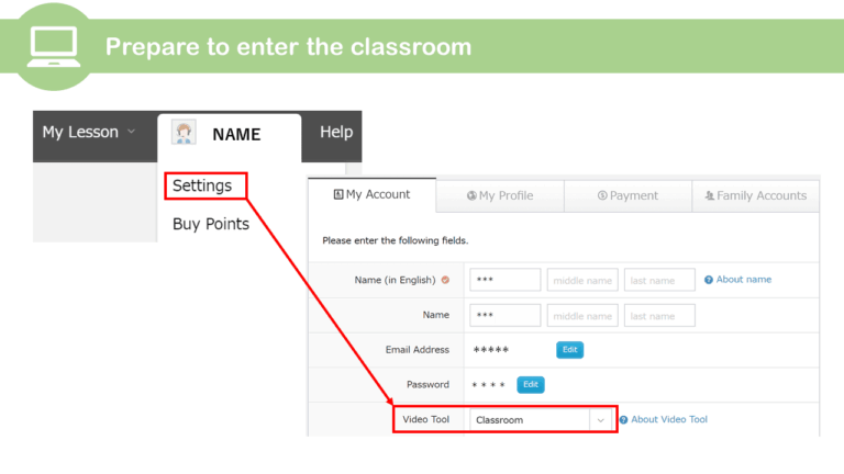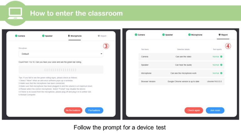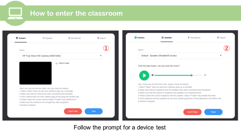 請連接耳機和麥克風以確保課堂的聲音品質,方便您聽和說。