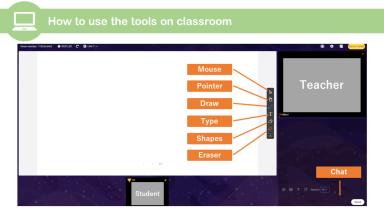 「近期課程」的地方會看到「進入教室」的按鈕,課程開始前 4 分鐘,“進入教室”按鈕變成橙色。請從該按鈕進入教室。